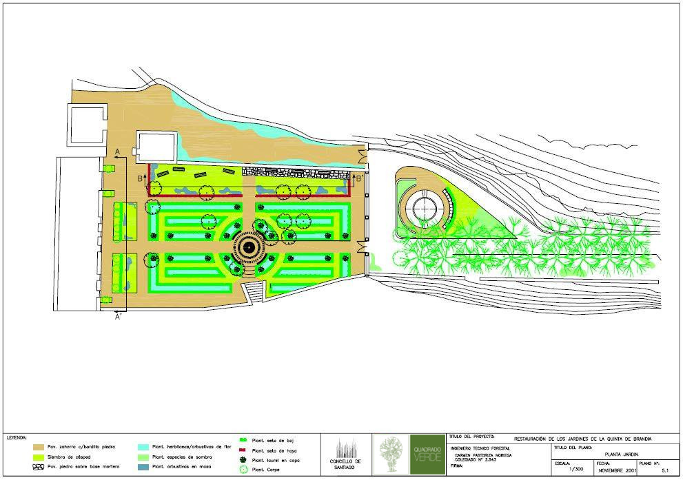 LA ANTIGUA “QUINTA DE BRANDÍA”, en Santiago de Compostela. Se diseña y ejecuta la reconstrucción fidedigna del jardín antiguo ornamental y del bosque de robledal. La intervención enlaza con el sedero fluvial del río Sar.